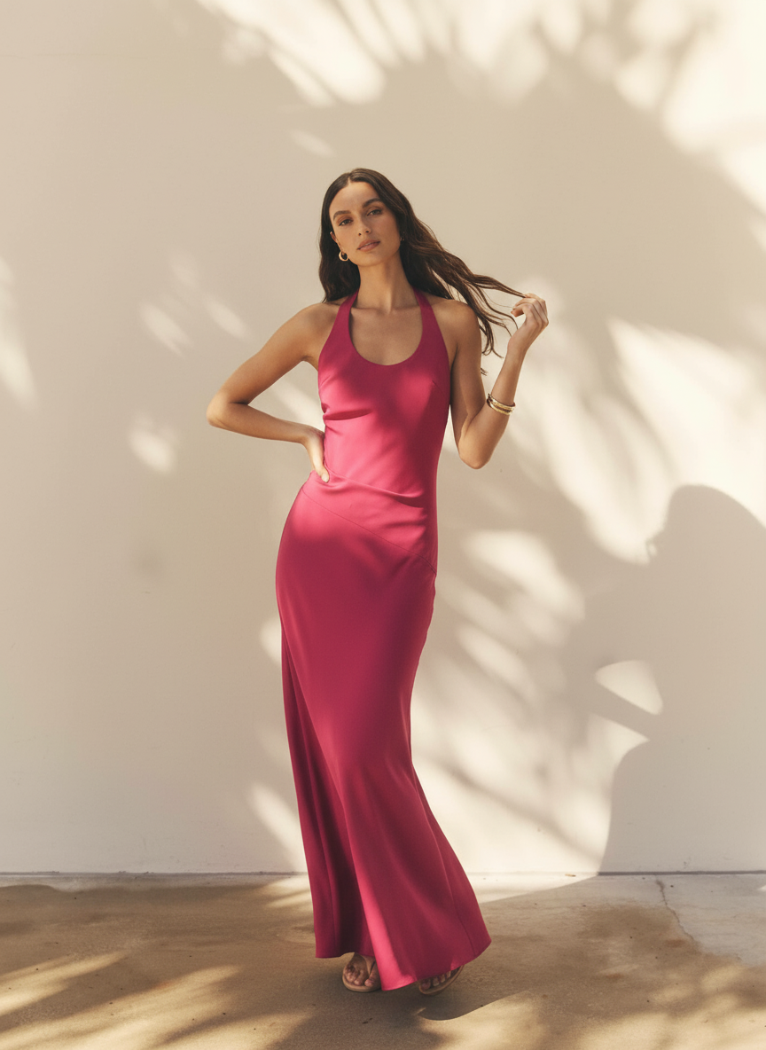 Autumn Dresses Women's 2025 Elegant Plain Sleeveless Halter Neck Draped Midi Basics Dating Dresses