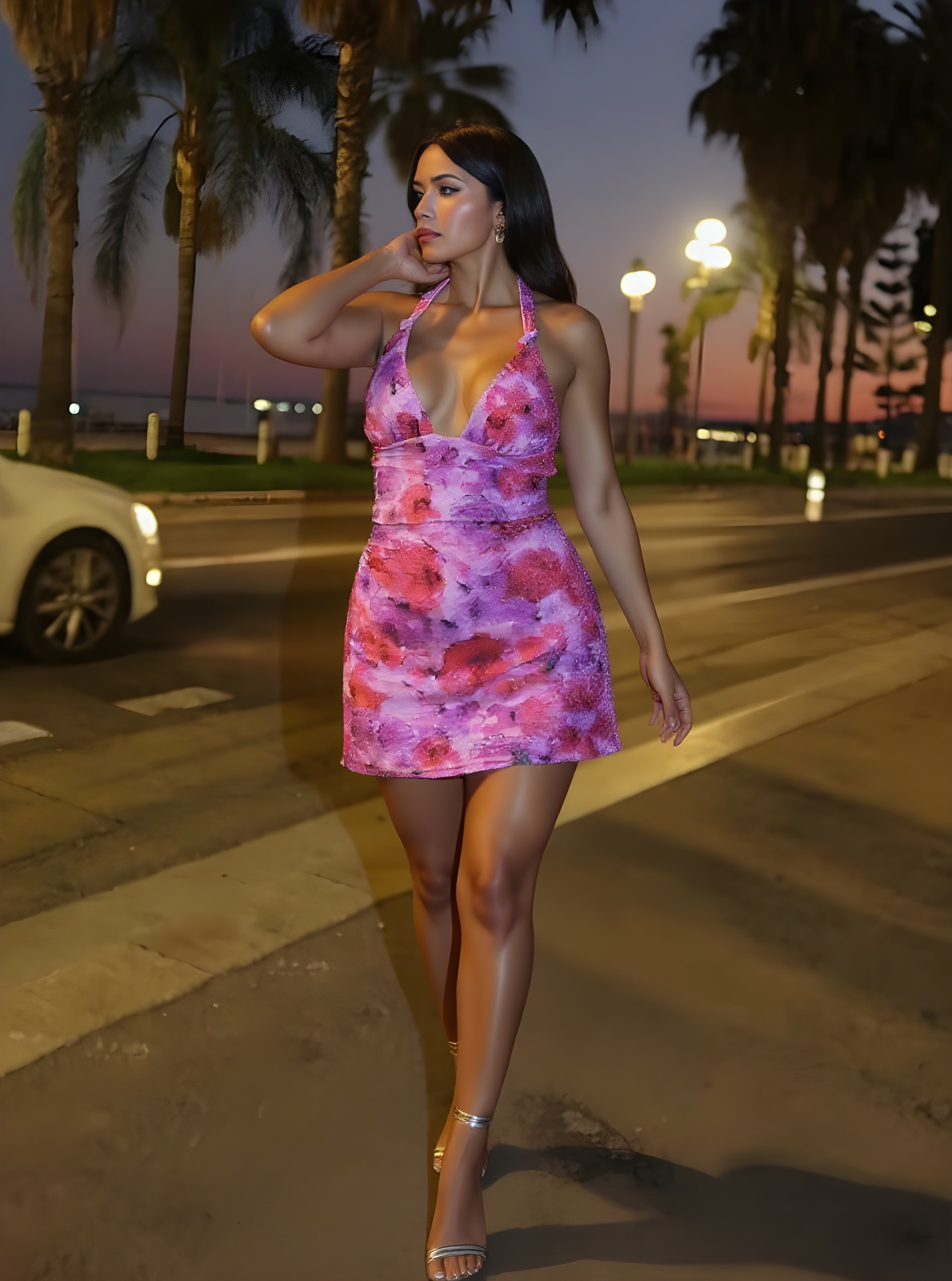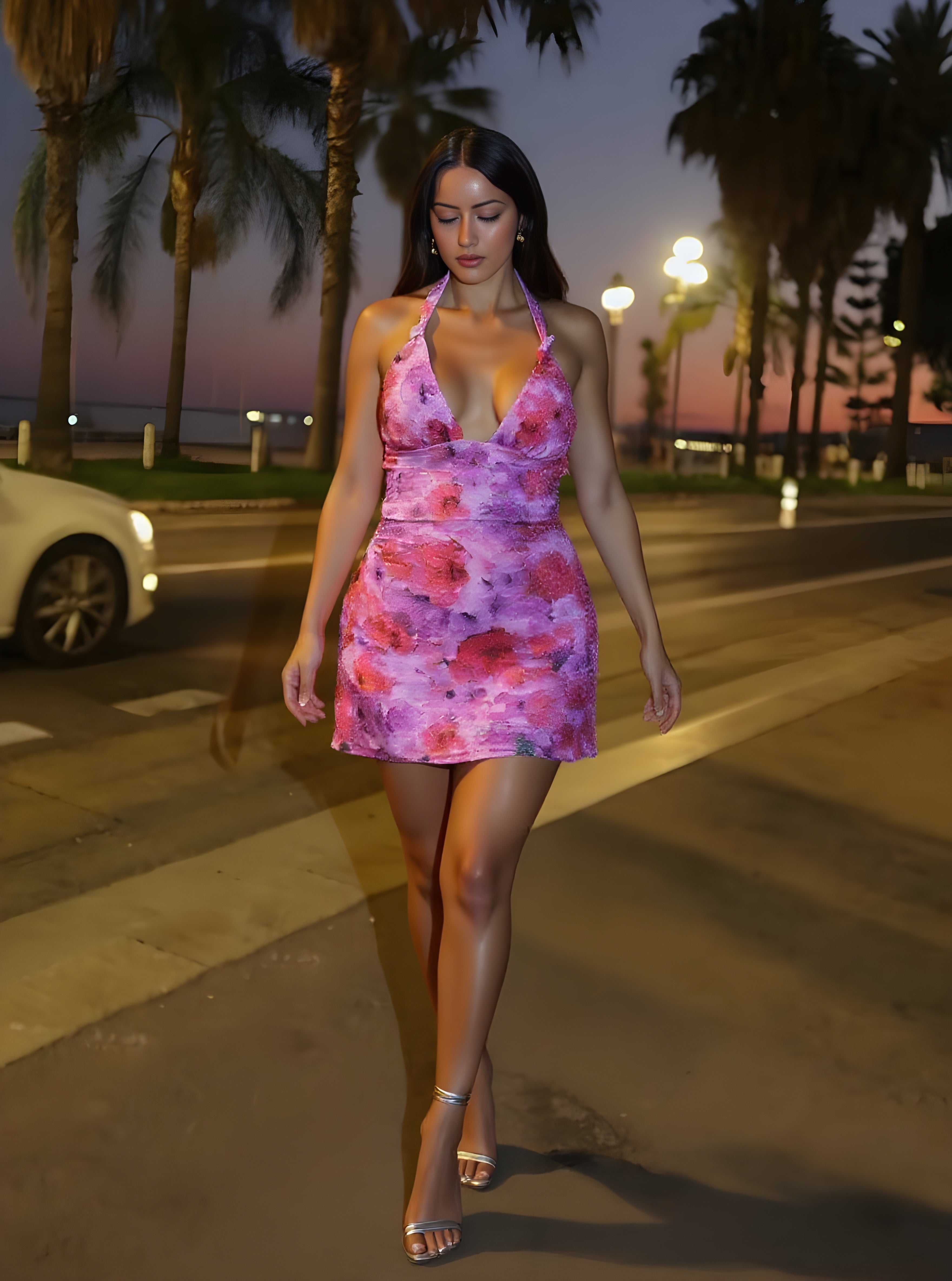 Autumn Dresses Women's 2025 Sexy Graphic Printing Sleeveless Halter Neck Mini Vacation Bodycon Dresses