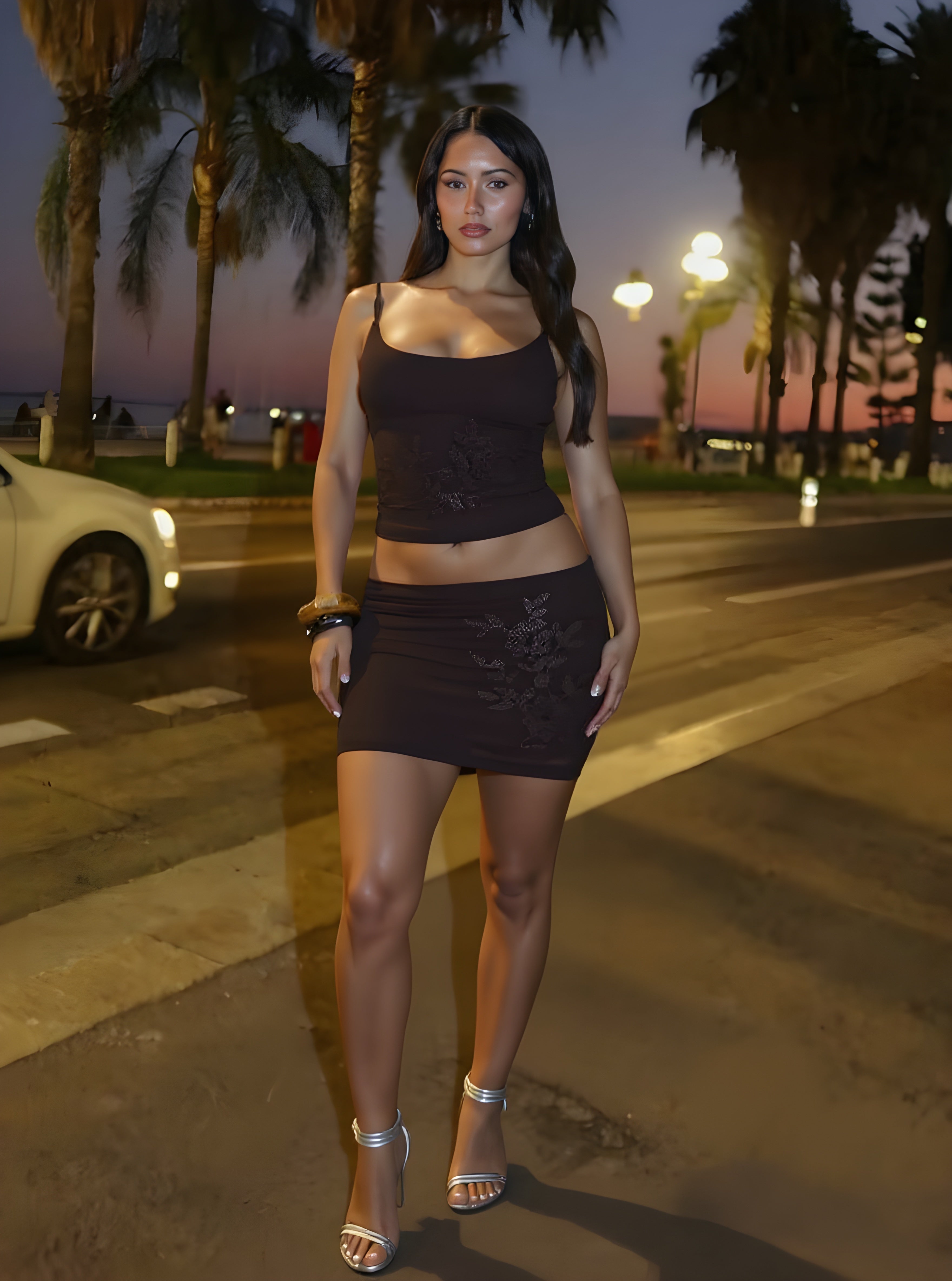 Autumn Sets Women's Fashion Graphic Printing Sleeveless Square Neck Cropped Tanks Wrap Skirts Daily Sets