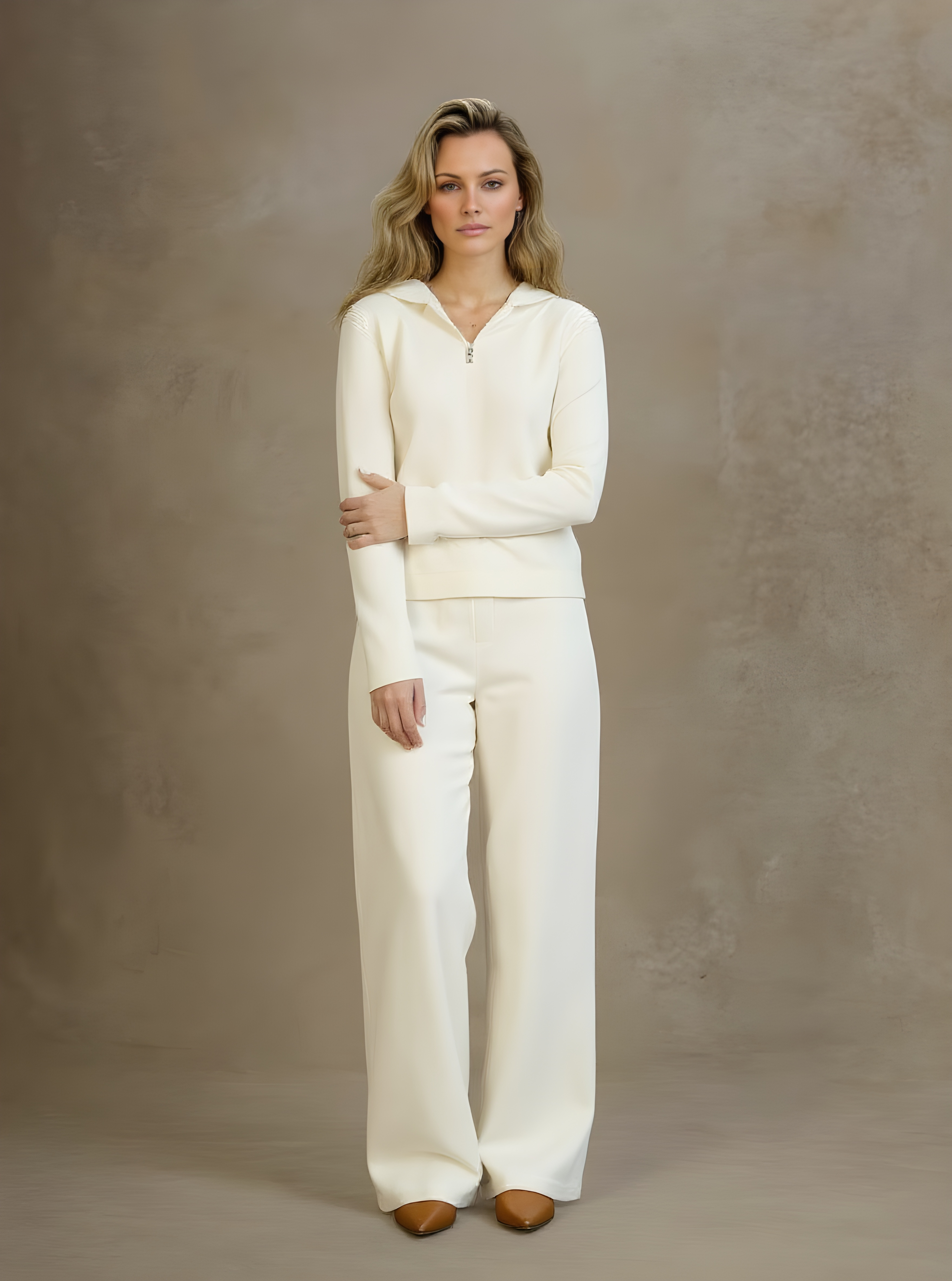 Regular fit — designed for a relaxed, flattering silhouette. Soft-touch fabric with gentle stretch for comfort and movement. True to size — we recommend taking your usual size. Model wears size S.