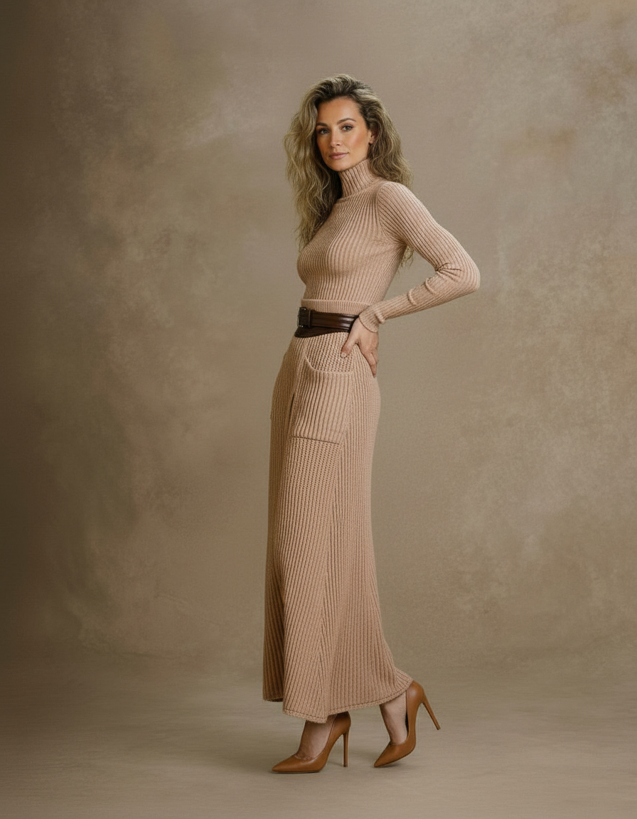 Autumn Sets Women's Fashion Plain Long Sleeve Mock Neck Top Wrap Skirt Daily Basic Sets