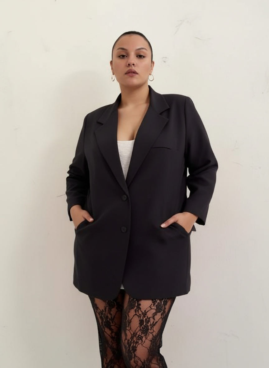 Plus Size Women's Autumn Blazers Elegant Business Plain Long Sleeve Lapel Fitting Slim Blazers