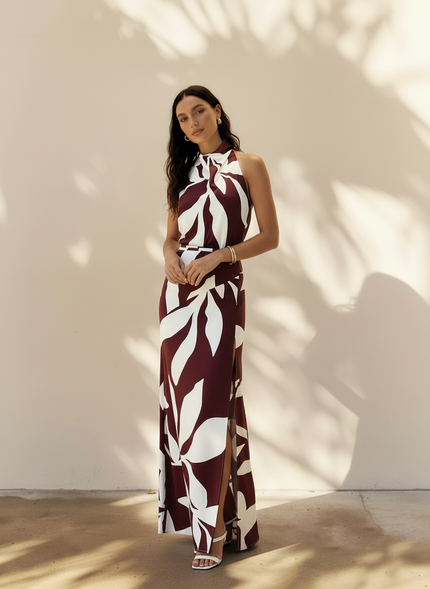 Women's Dresses Summer Daily Basic Full Print Sleeveless Crew Neck Tie Waist Vacation Maxi Dresses
