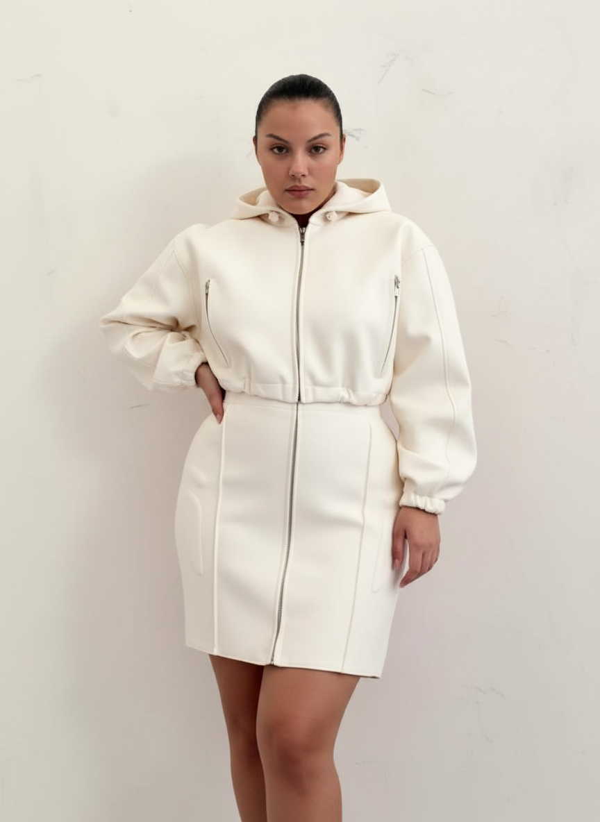 Women's Sets Autumn Fitting Slim Korean Plaub Long Sleeve Hooded Top High Waist Wrap Skirts Casual Sets